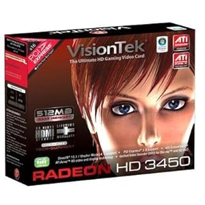 The VisionTek ATI Radeon HD 3450 enables you to experience the power of HD with graphics processing designed for entertainment and productivity. Watch Blu-ray and HD-DVD videos in full 1080p HD �?" and upscale beyond - without placing huge demands on your CPU. Play the next generation of HD games featuring life-like realism from DirectX® 10.1 compatibility and easy multi-GPU upgradeability with ATI�"� Hybrid Graphics or ATI CrossFireX�"�. Enjoy break-through efficiency from cutting-edge technology and new energy-saving features that can help you save money and enable cool, quiet PCs.